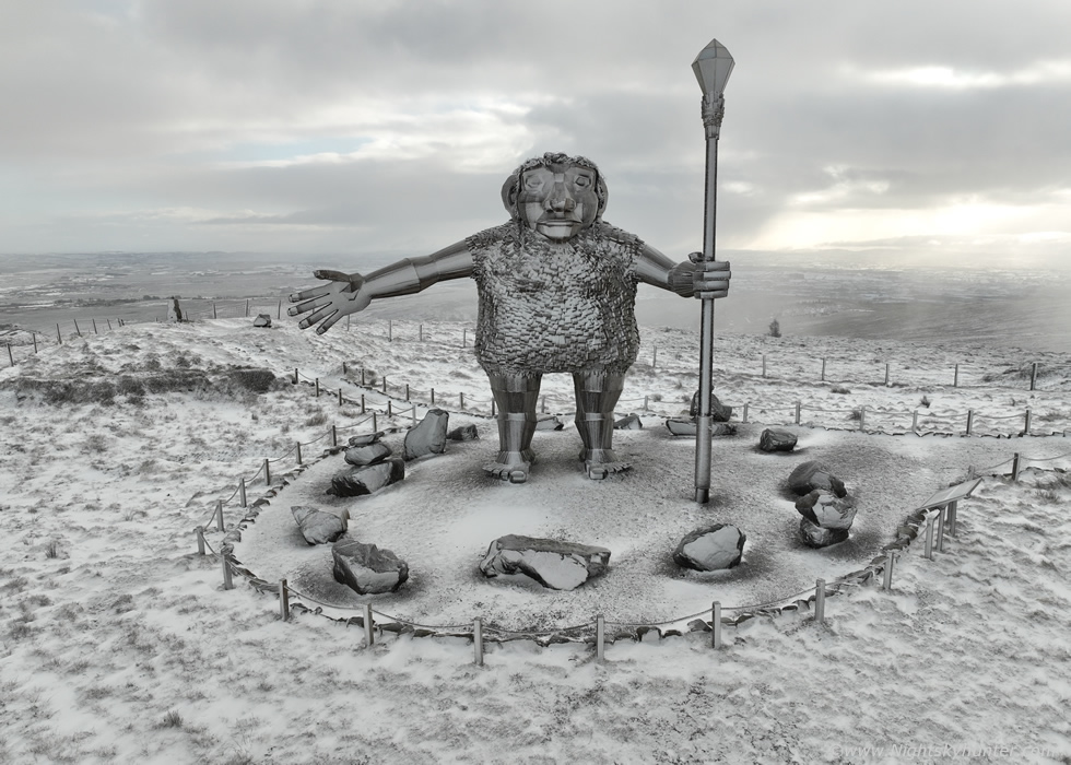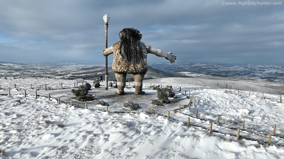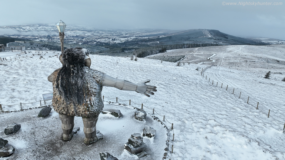 Mission accomplished! I had got drone images and footage of the giant in snow, a first for us both, the light was eerie and moody, I wanted blue skies and sunshine however I would take whatever I could get at this stage.