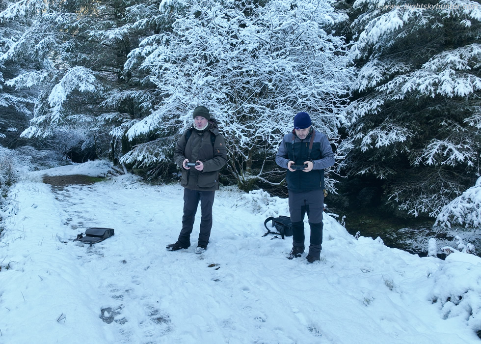 Once back in the forest we where in the Winter wonderland again, we were enjoying ourselves so much we didn't want to go home yet so we spent time in the trails taking images and doing another flight. Paul and I engrossed in our drones from inside the forest.
